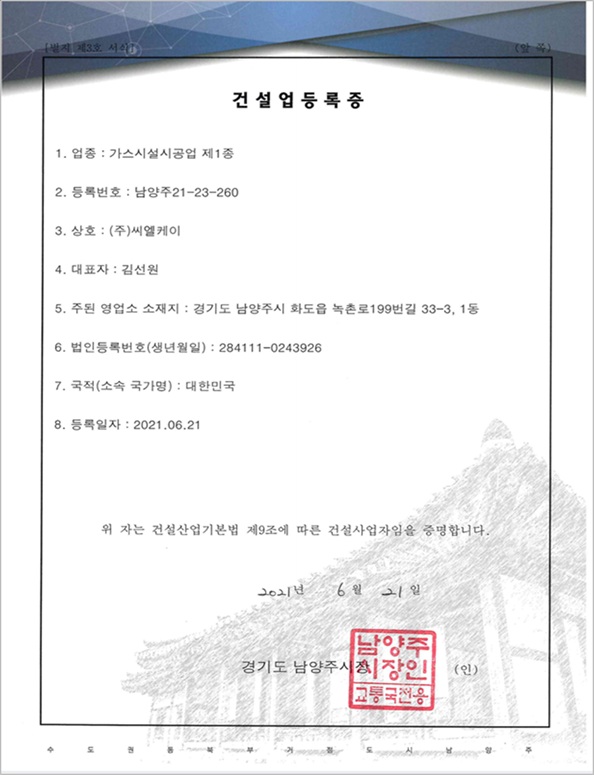 고압가스 저장시설 구축